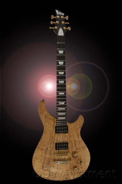 Post production alternatives are literally unlimited and you can really let your imagination run free if you have the luxury of time to play. Here is an example showing the Photoshop treatment that Dave applied to a studio image of an Ed Roman guitar – a special item that he photographed on behalf of a good friend and discerning guitar collector.